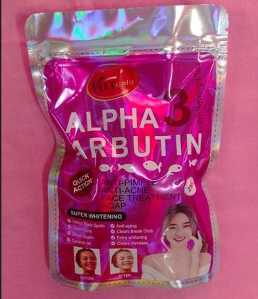 Ingrédients : palmate de sodium, palmiste de sodium, cocoate de coco, parfum, dioxyde de titane, glycérine, poudre d’élite, EDTA, rétinol, alpha-arbutine.